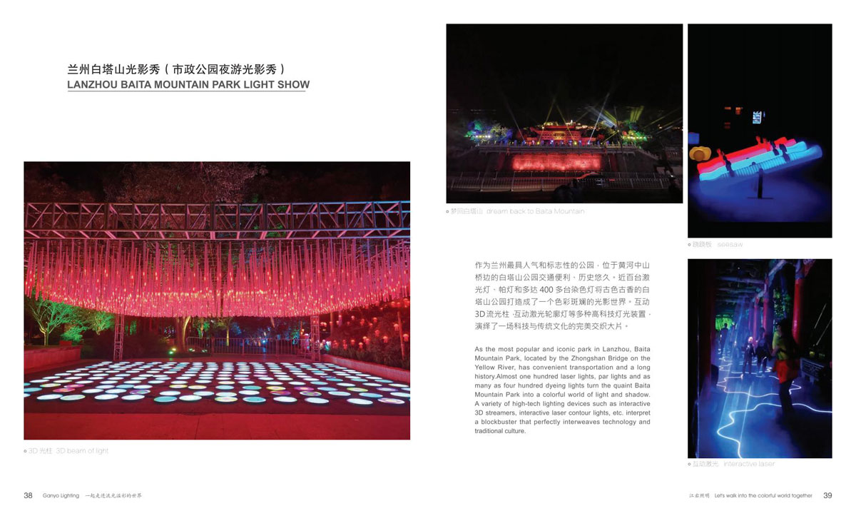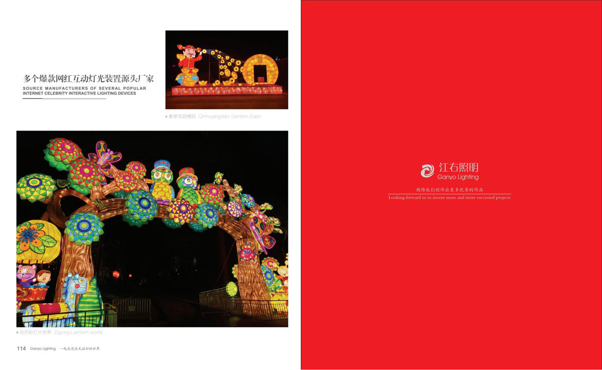 同时和国内众多设计院、设计公司保持紧密的合作,依托了强大的研发设计团队。江右一直致力于文旅产品,在全彩、互动式、手机联动等方面的推陈出新,运用大量投影、激光、雾森、显示屏、音响等表现形式到非标定制产品中,实现真正的声光电整体联动。产品涵盖节日装饰灯和互动非标定制文旅灯两大板块,公司销售网络遍布全国,产品远销欧美、东南亚、中东、南美洲等国家和地区。